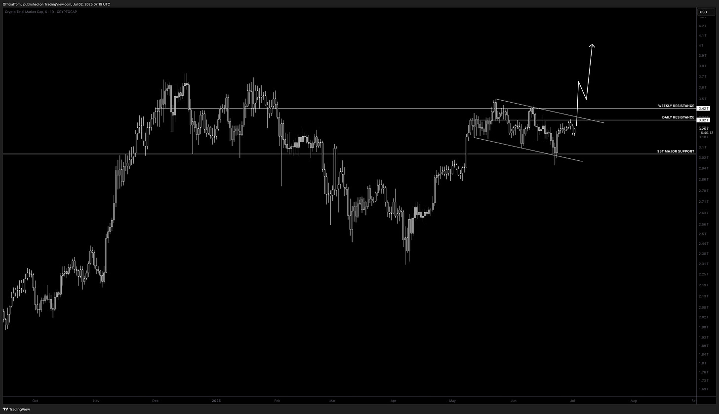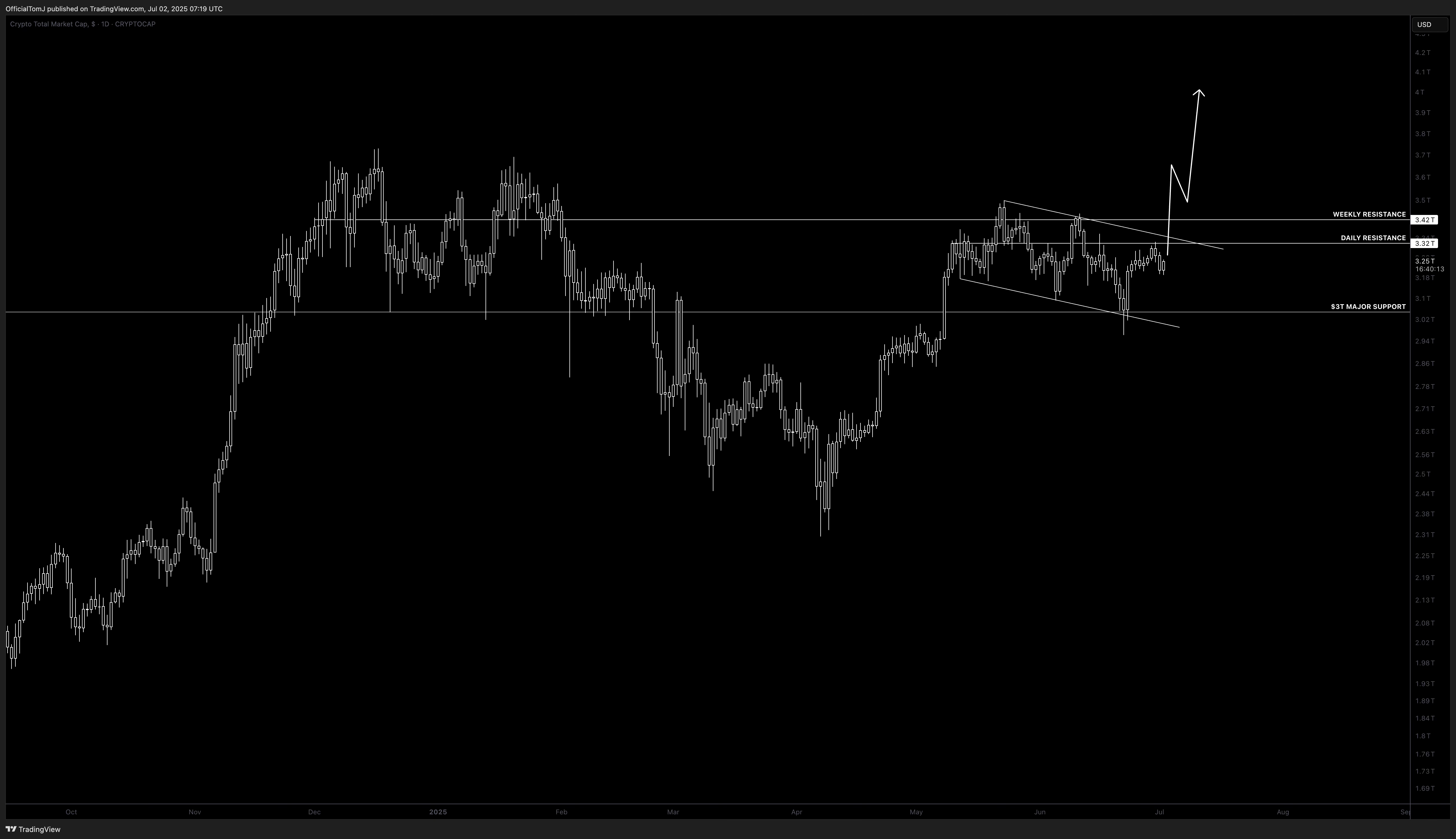 In this market breakdown video, I walk through how our previous analysis around the $3.42T resistance on $TOTAL played out to the dollar, why Bitcoin’s retest of $100K marked the end of the correction, and what comes next.